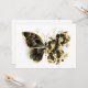 Gold flower butterfly with black jewellery orchid, decorated with gold leaves on white background.