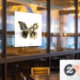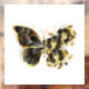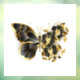 Gold flower butterfly with black jewellery orchid, decorated with gold leaves on white background.