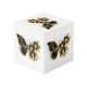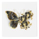 Gold flower butterfly with black jewellery orchid, decorated with gold leaves on white background.