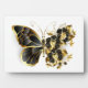 Gold flower butterfly with black jewellery orchid, decorated with gold leaves on white background.