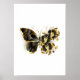 Gold flower butterfly with black jewelry orchid, decorated with gold leaves on white background.