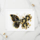 Gold flower butterfly with black jewellery orchid, decorated with gold leaves on white background.
