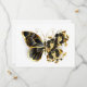 Gold flower butterfly with black jewellery orchid, decorated with gold leaves on white background.