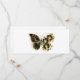 Gold flower butterfly with black jewellery orchid, decorated with gold leaves on white background.