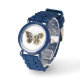 Gold flower butterfly with black jewellery orchid, decorated with gold leaves on white background.