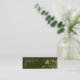 Trendy skinny business card design of gold abstract flowers on a dark gold and black striped background with white text. Customisation is easy.