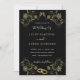 Gold Flowers Black Modern Wedding Invitation