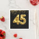 Gold mylar party balloons on black with gold star confetti for 45th birthday or anniversary party