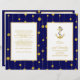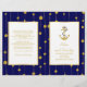 Gold foil anchor and beads modern navy blue nautical folded wedding ceremony and party program featuring an anchor made of FAUX gold foil and a pattern border of golden balls that look like beads on the rope on navy blue background. Your text is in gold on white with gold outline. This elegant, stylish and contemporary wedding design is a completely customisable template and is part of a wedding collection or set perfect for a summer beach wedding . You will have to fold it in the centre. Choose only this type of paper-value as it folds well. Note that THERE IS NOT REAL GOLD FOIL JUST PRINTED IMAGES.