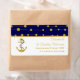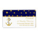 Gold foil anchor and beads modern navy blue nautical wedding label featuring an anchor made of FAUX gold foil and a pattern border of golden balls that look like beads on the rope on navy blue background. Your text is in gold on white with gold outline. This elegant, stylish and contemporary wedding design is a completely customisable template and is part of a wedding collection or set perfect for a summer beach wedding . Note that THERE IS NOT REAL GOLD FOIL JUST PRINTED IMAGES.