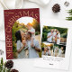 Send a luxe holiday greeting with this gold foil arch Merry Christmas photo design. A favorite family photo fills a tall arch window, framed by a rich red background and shimmering real gold foil “Merry Christmas” typography that curves around the image for an elegant, modern look. Your family name and year appear at the top in coordinating script. On the back, add a collage of three additional photos plus a short personalized holiday message to share more of your year. Customize the text and photos to create a sophisticated, keepsake-worthy Christmas greeting that truly shines.