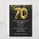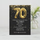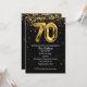 Gold mylar balloons with confetti stars on black for 70th birthday party invite.