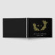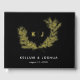 Gold foil laurels pop on this beautiful modern, black distinguished monogram guest book. Perfect for weddings and the most elegant affairs. Customise with your own details and place on your bookshelf for beautiful memories. Original art and design by Annie Montgomery Design.
