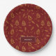 Gold Foil Christmas Tree Pattern Red Holiday Paper Plate