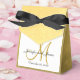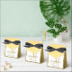 Personalised Gold Foil and Black and White Gold Monogram Wedding Favour Boxes with thank you message under the flap. Design by Elke Clarke ©. Available at www/zazzle.com/monogramgallery*. Gold foiled is a printed photo effect. Elegant script fonts. Customise with your bride and groom names, wedding date and wedding colours.