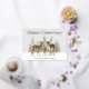 Elegant gold-foil deer family "Merry Christmas" greeting card. A father, mother, and baby deer are standing in a pine forest with snow falling all around. Personalise with your family name and your own special message on the back. Or use the one we have.