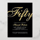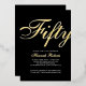 Gold Foil and black Fifty and Fabulous minimal modern elegant script 50th birthday invitation that you can personalise and send out for your fiftieth birthday party celebration. The words "Fifty and Fabulous" are set using popular elegant script font typography - modern, minimal, classic, timeless. The text colours can be changed using the edit menu.