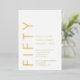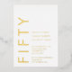 Gold Foil on White Fifty and Fabulous Modern Minimal 50th birthday invitation that you can personalize and send out for your fiftieth birthday party celebration. The words are set using timeless and trending bold font typography. Text and background colors can be changed using the edit menu.