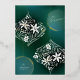 Introducing a holiday card that combines timeless elegance with heartfelt sentiment - a stunning creation featuring an enchanting illustration of ornaments bedecked with exquisite hand-drawn flowers set against a rich, dark green background.