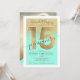 A modern, chic and elegant gold metallic foil Quinceañera birthday party invitation with a modern Sweet 15 typography with gold foil on an editable pastel mint green frame background on gold glitter ombre gradient. Add your photo at the back . Perfect for the princess theme Sweet fifteen!