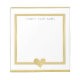 Features a gold foil inset frame and heart, overlaying a white background, and gold foil edging. Personalise the notepad with your own name or text.