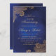 Gold Foil Lace Ornate Blue 50th Wedding Anniversary Invitation