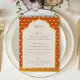 Honour the traditions of your Indian or Hindu wedding with our exquisite gold foil menu cards. These elegant cards feature a charming motif of lotus flowers, a symbol of auspiciousness in Indian and Hindu culture, rendered in shimmering gold foil. Choose from a palette of six captivating colours – red, orange, blue, purple, pink, and charcoal – to perfectly complement your wedding décor. These cards are the perfect canvas to showcase your thoughtfully curated menu, leaving a lasting impression on your guests as they celebrate your joyous occasion.
