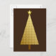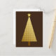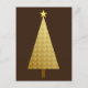 Postcard with a simplified modern take on a classic Christmas tree motif, gold foil-look gradient / brocade in an antique floral wallpaper design with a deep chocolate brown background