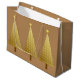 A simplified modern take on a classic Christmas tree motif, gold foil-look gradient / brocade in an antique floral wallpaper design