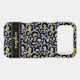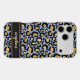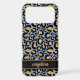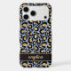 Customise this gold foil leopard print on a blue brushed metallic background iPhone 17 pro max case with your your name in a trendy modern script font in a coordinating gold on black. It so chic!