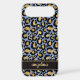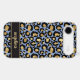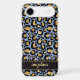 Customize this gold foil leopard print on a blue brushed metallic background iPhone 17 air case with your your name in a trendy modern script font in a coordinating gold on black.