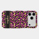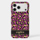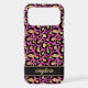 Customize this gold foil leopard print on a hot pink brushed metallic background iPhone 17 pro max case with your your name in a trendy modern script font in a coordinating gold on black. So chic!