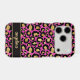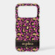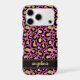 Customize this gold foil leopard print on a hot pink brushed metallic background iPhone 17 pro case with your your name in a trendy modern script font in a coordinating gold on black. So chic!