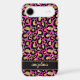 Customize this gold foil leopard print on a hot pink brushed metallic background iPhone 17 air case with your your name in a trendy modern script font in a coordinating gold on black. So chic!