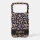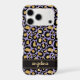 Customize this gold foil leopard print on a purple brushed metallic background iPhone 17 pro case with your your name in a trendy modern script font in a coordinating gold on black. So chic!