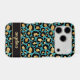 Customize this gold foil leopard print on a teal brushed metallic background iPhone 17 pro case with your your name in a trendy modern script font in a coordinating gold on black. So chic!