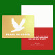 This lovely greeting card features a white dove on the front with the words "Peace on Earth" right below. Inside on a red background is a lovely Christmas verse and a place for you to personalise the card with the name of your family. Copyright Kathy Henis