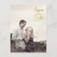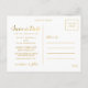 Gorgeous faux gold foil typography on the front of this designer postcard which you can upload into with your own engagement/save the date photo portrait. Easily and quickly personalise this designer professionally printed save the date postcard here and now by just typing over the example text and adding your own photograph. Elegant, chic, simple and classy gold script/cursive typography