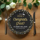 Gold Foil Script Confetti Congrats Grad Black Paper Plate