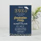 Gold Foil Script Confetti Graduation Party Blue Invitation