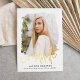 This trendy graduation announcement features the graduate's photo framed in a textured mask design, with "Graduate" elegantly displayed in handwritten gold foil script for a modern and chic look. Personalise this stylish photo graduation announcement by adding the graduate's name, school name, and graduation year to create a memorable keepsake. The reverse side features a bold black and white striped design, making this announcement a standout choice for high school and college graduates alike. Share this exciting milestone with family and friends in a unique, sophisticated way!