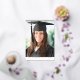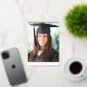 A simple modern card to announce a graduation. The front features GRADUATE in real gold foil script typography. Personalise with a photo of the graduate, the graduations name, graduating year and school. The reverse has a typography template to personalise with your own message or you can delete all text to leave blank.