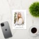 Trendy graduation party invitations featuring the graduate's photo inside of a textured mask frame with "Graduate" in a handwritten gold foil script. Personalise the front of the photo graduation party invite by adding the graduate's name, school name, and graduation year. The invite reverses to display your graduation party details with a black and white striped design.
