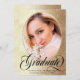 Invite your friends and family to your virtual college graduation celebration in style with this chic photo graduation announcement and virtual party invitation. This modern template design features a photo for you to change to your own framed in faux gold foil. Below your photo it reads "Graduate" in elegant black script typography with your name, school and year to personalise. The back of the card has all your virtual party details to customise accented by a black graduation cap. Designed by Susan Coffey.