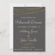 Gold Foil String Lights and Handwritten Script Charcoal Grey Elegant Wedding Rehearsal Dinner Invitation.