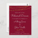 Faux Gold Foil String Lights and Handwritten Script Burgundy Marsala Elegant Wedding Rehearsal Dinner Invitation.