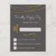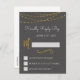 Gold Foil String Lights and Handwritten Script Charcoal Grey Simple and Elegant Wedding RSVP Reply Card.