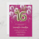 Gold Foil Sweet 16 Birthday Balloons Hot Pink Invitation
