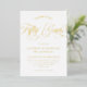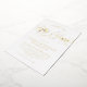 Elegant white and gold 50th wedding anniversary dinner invitation in white with golden fonts. 50th wedding anniversary invitation with golden fonts against a white background. Fifty Years in a swirly golden script. Add a photo of the happy couple celebrating their 50th wedding anniversary on the back of the white and gold invitation. All gold details are printed with gold foil.