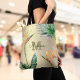 Gold Foil Tropical Island Floral Monogram Script Tote Bag